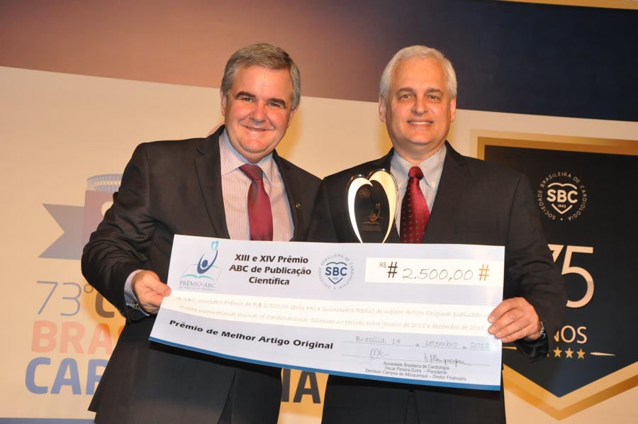 As duas revistas científicas da SBC, Arquivos Brasileiros de Cardiologia – ABC Cardiol e International Journal of Cardiovascular Sciences – IJCS, realizaram uma noite de premiação aos melhores trabalhos dos últimos anos. A entrega do Prêmio ABC de Publicação Científica foi no Espaço da Corte, em Brasília, na primeira noite do 73° Congresso Brasileiro de Cardiologia. A condução do evento foi do diretor de Comunicação da SBC, Romeu Meneghelo.