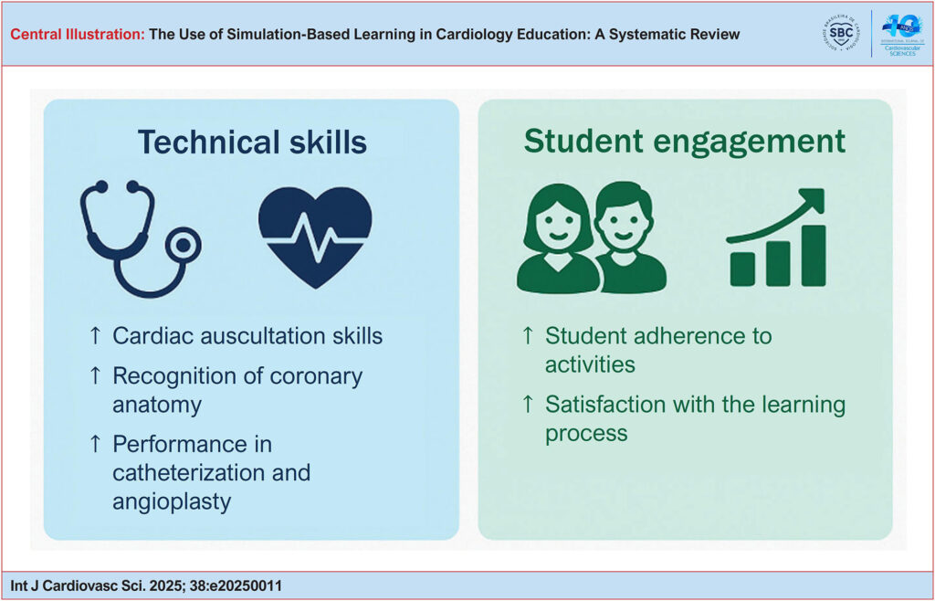 A total of 435 articles were initially identified based on the search criteria. Seven articles were selected for detailed analysis. Three of these studies reported an improvement in cardiac auscultation skills through simulation. One study showed improved ability to recognize coronary anatomy; another demonstrated enhanced performance during catheterization, and one highlighted better outcomes during angioplasty. Only one study showed a slight improvement in the diagnosis of acute myocardial infarction. In addition to these clinical improvements, there was also a noted increase in student engagement and satisfaction.