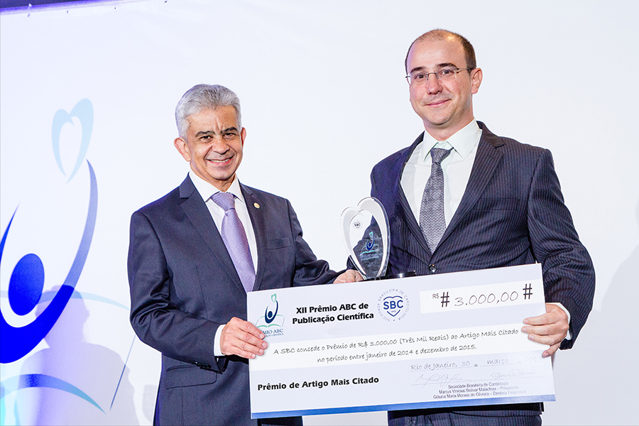 O XII Prêmio ABC de Publicação Científica foi entregue no dia 30 de março, em cerimônia no Windsor Hotel, no Rio de Janeiro. Estavam presentes o presidente da SBC Marcus Bolívar Malachias; o vice-presidente Eduardo Nagib Gaui; o diretor de pesquisa Leandro Zimerman; a diretora financeira Gláucia Maria Moraes de Oliveira; o editor-chefe dos Arquivos Brasileiros de Cardiologia Luiz Felipe Pinho Moreira; e o editor-chefe do International Journal of Cardiovascular Sciences Claudio Tinoco Mesquita.